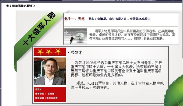 中國印刷行業(yè)的十大評選,一直是被譽為:“印刷行業(yè)中的奧斯卡”最高獎,來自中國西部唯一的參評企業(yè),重慶三潤才印刷設(shè)備制造有限公司總經(jīng)理,在初評五十強(qiáng)中,三十強(qiáng)中,十強(qiáng)中,一直高票領(lǐng)先。用實力證明重慶印刷包裝機(jī)械制造水平不斷提升,角逐國內(nèi)市場,走向國際化。